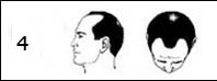 Sınıf 4 : Verteks Androgenetik saç dökülmesi : Saç dökülmesi özellikle tepe noktasında başlamıştır. Bunun yanı sıra on saç çizgisinde de gerileme görülebilir. |